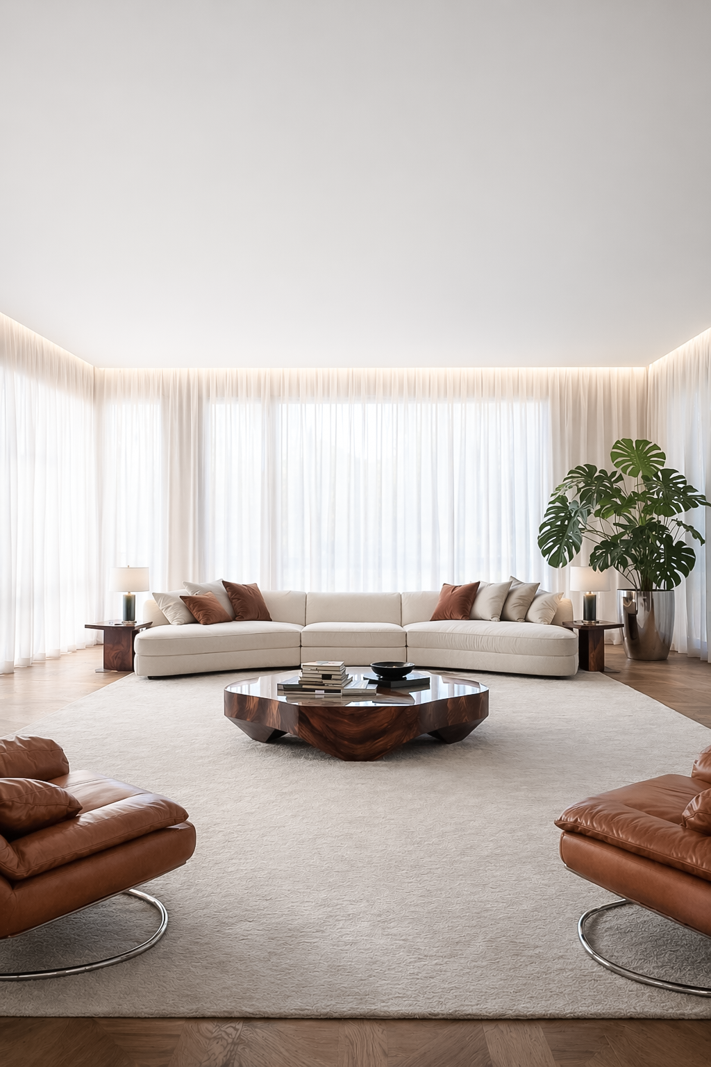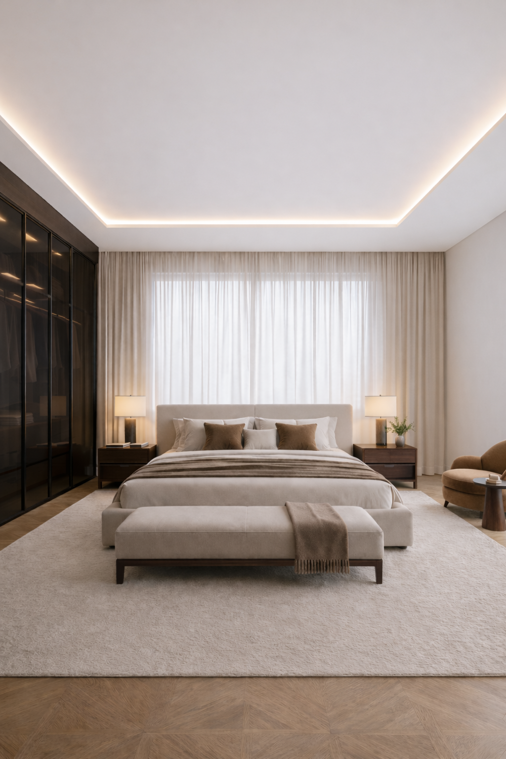 The architecture itself remains intentionally silent. It does not seek to impose a strong formal identity, but instead acts as a framework that allows materials and light to define the space. This restraint creates a sense of timelessness, where the design does not rely on trends or gestures, but on proportion, balance, and sensory quality.